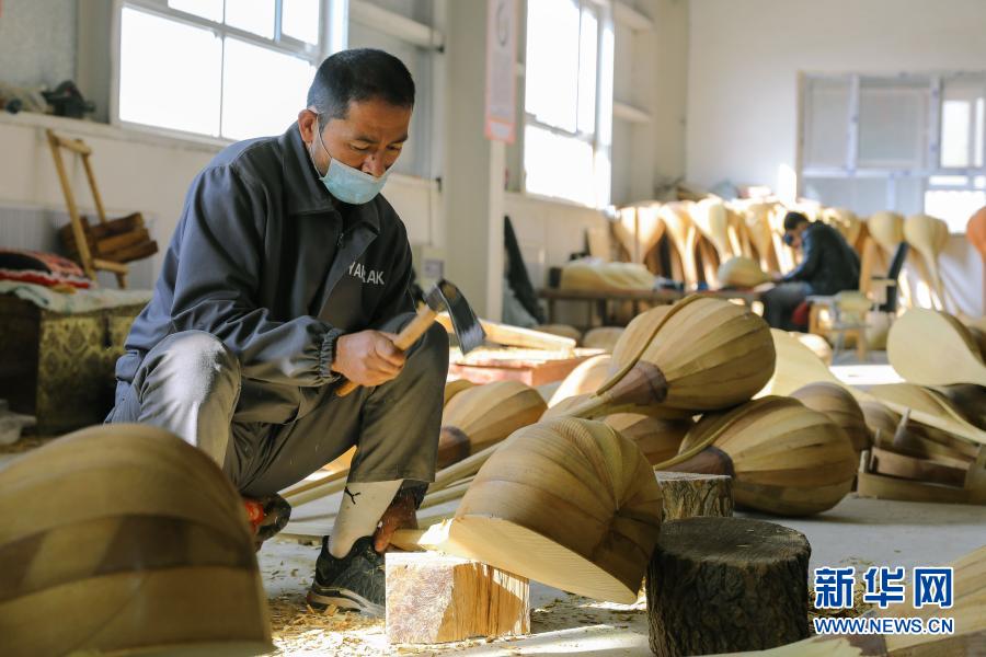 村民在加依村樂器制作農民專業合作社制作民族樂器(11月12日攝)。新華社記者 張曼 攝