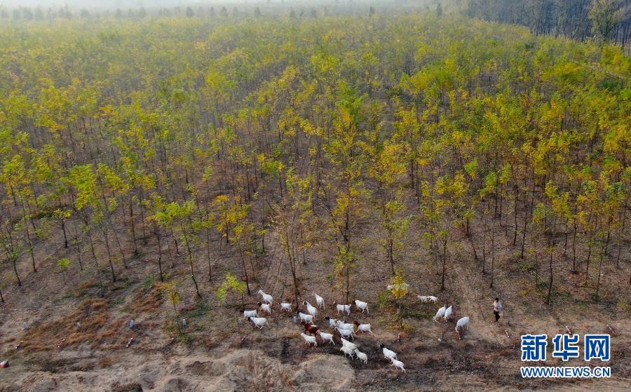 這是11月6日在河南省商丘市民權(quán)縣拍攝的民權(quán)林場(無人機照片)。新華社記者 郝源 攝