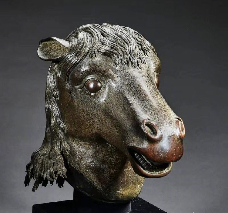 1860年英法聯軍侵入北京,圓明園慘遭劫掠并遭焚毀,馬首銅像與其他11尊獸首銅像一同流失海外。