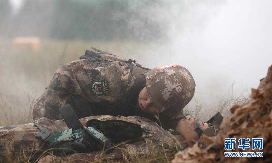 衛(wèi)勤專業(yè)參賽隊員在進行戰(zhàn)場“傷員”急救(11月29日攝)。新華社發(fā)(武一明 攝)