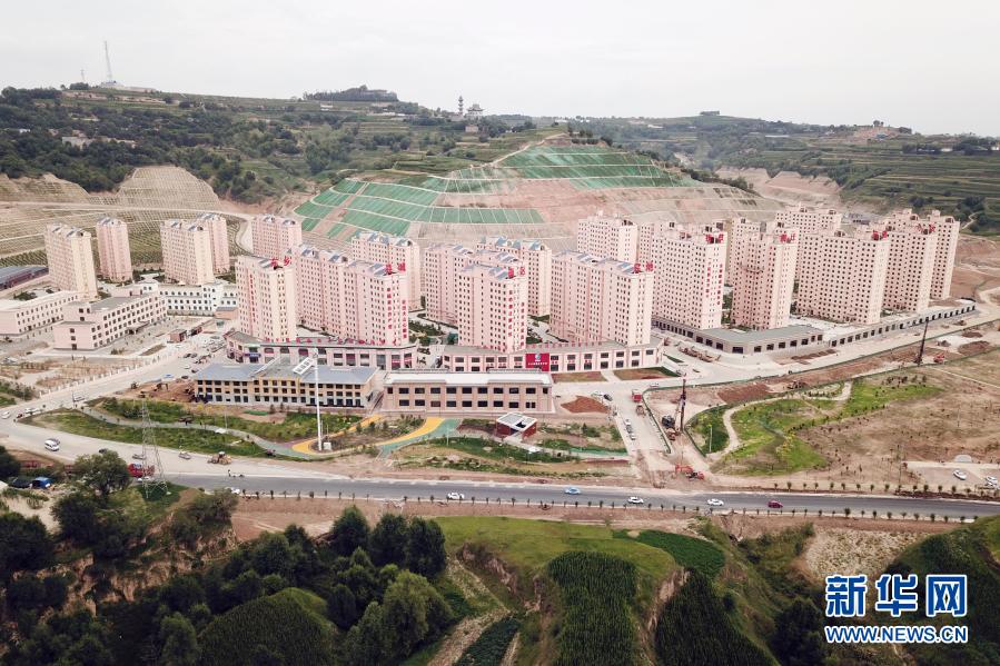 這是8月3日在東鄉族自治縣拍攝的縣城南區易地扶貧搬遷安置小區(無人機照片)。新華社記者 范培珅 攝