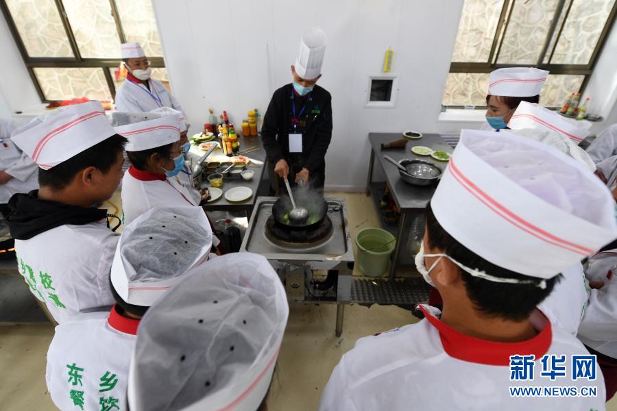 東鄉縣職業技術學校烹調面點培訓班學員在上課(4月21日攝)。新華社記者 范培珅 攝