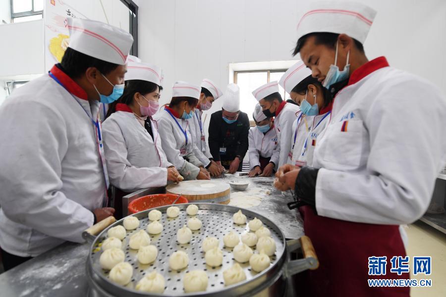 東鄉縣職業技術學校中式烹飪培訓班學員在學習包子制作技能(4月21日攝)。新華社記者 范培珅 攝