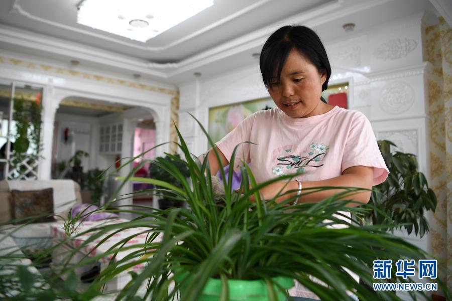 在臨夏回族自治州臨夏縣土橋鎮易地扶貧搬遷安置點,搬遷戶楊喜梅在家中收拾家務(8月11日攝)。新華社記者 陳斌 攝