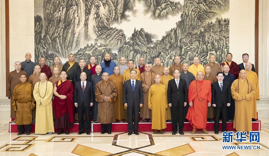 12月4日,中共中央政治局常委、全國政協主席汪洋在北京分別會見中國佛教協會、中國道教協會第十屆理事會領導班子。這是汪洋會見中國佛教協會第十屆理事會領導班子。新華社記者 黃敬文 攝