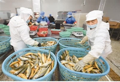 今年以來,福建省霞浦縣稅務部門全力優化出口退稅流程,有效緩解企業資金壓力,助力企業順應形勢開拓海內外市場。1-10月,霞浦縣共辦理出口退稅1.46億元。圖為福建省海洋絲路漁業有限公司員工在加工出口美國的大黃魚。新華社記者 宋為偉攝