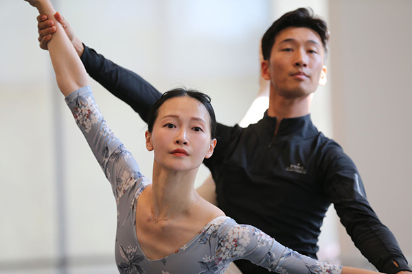 5月17日,項陽(左)作為主要演員參加現代芭蕾《家園的呼喚》連排。