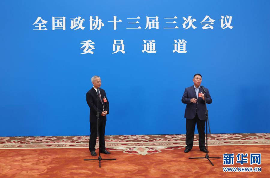全國政協十三屆三次會議首場“委員通道”采訪活動于5月21日在人民大會堂新聞發布廳舉行,邀請部分全國政協委員通過網絡視頻方式接受媒體采訪。圖為“委員通道”現場。新華網 王翰林 攝