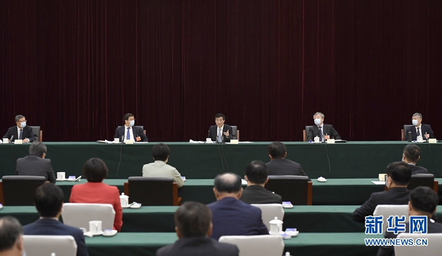 5月23日,中共中央政治局常委、中央書記處書記王滬寧看望出席全國政協(xié)十三屆三次會(huì)議的體育界、醫(yī)藥衛(wèi)生界委員并參加討論。 新華社記者 岳月偉 攝