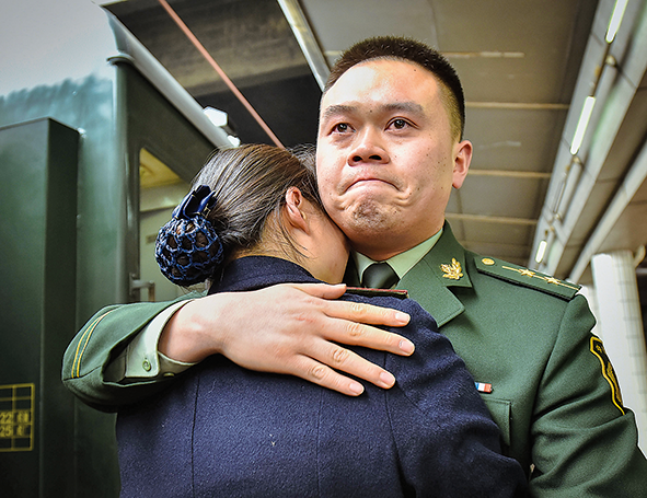 當(dāng)列車門打開,看到新婚妻子的一剎那,樊鼎這個一米八的漢子不禁淚濕雙眼。“過去六年,我們基本都是半年才能見上一次面……但不后悔,正因為互相支持和理解,才支撐我們走到今天。”