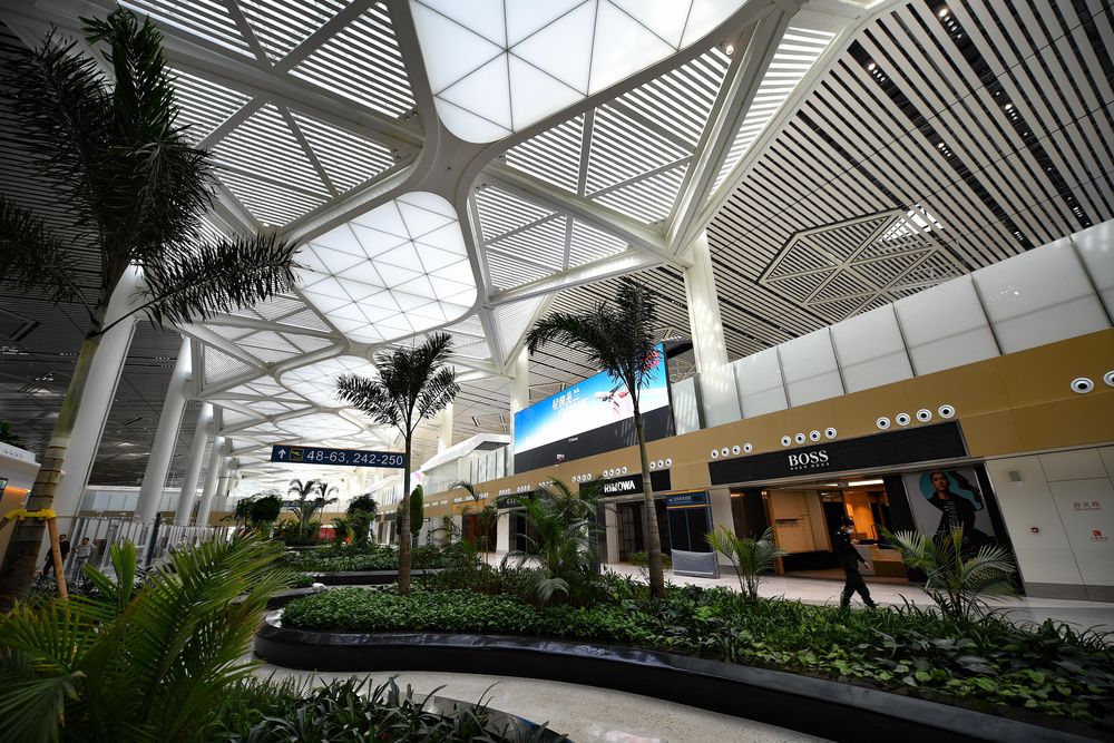 海口美蘭國(guó)際機(jī)場(chǎng)二期擴(kuò)建項(xiàng)目T2航站樓內(nèi)景。(新華社記者郭程2020年12月27日攝)