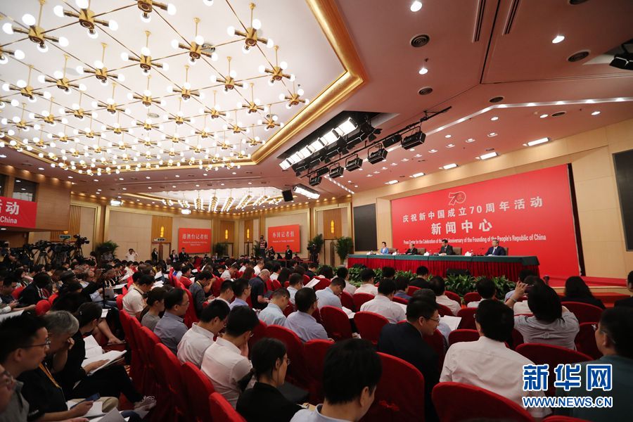 9月24日,慶祝中華人民共和國成立70周年活動新聞中心在北京梅地亞中心二層新聞發布廳舉辦第一場新聞發布會。圖為新聞發布會現場。新華網記者 陳競超 攝
