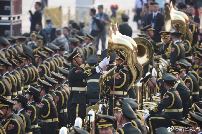 1日清晨,新中國閱兵史上最大規模軍樂團——由1300余名官兵組成的中國人民解放軍聯合軍樂團亮相國慶70周年慶祝活動現場。據聯合軍樂團團長張海峰介紹,聯合軍樂團成員來自全軍10個大單位。執行演奏任務的3名總指揮首次穿著陸、海、空三軍禮服指揮樂隊。這次從各軍兵種遴選200多名女軍樂演奏員,是歷次閱兵中女演奏員人數最多的一次。?