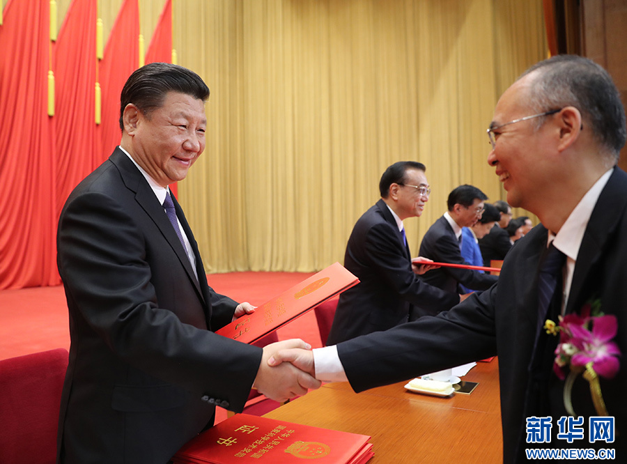 上午10時,大會在雄壯的國歌聲中開始。在熱烈的掌聲中,中共中央總書記、國家主席、中央軍委主席習近平首先向獲得2017年度國家最高科學技術獎的南京理工大學王澤山院士和中國疾病預防控制中心病毒病預防控制所侯云德院士頒發獎勵證書,并同他們熱情握手,表示祝賀。隨后,習近平等黨和國家領導人向獲得國家自然科學獎、國家技術發明獎、國家科學技術進步獎和中華人民共和國國際科學技術合作獎的代表頒獎。