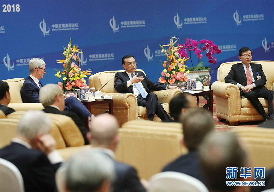 3月26日,國(guó)務(wù)院總理李克強(qiáng)在北京會(huì)見出席中國(guó)發(fā)展高層論壇2018年年會(huì)的外方代表并同他們座談。 新華社記者 劉衛(wèi)兵 攝