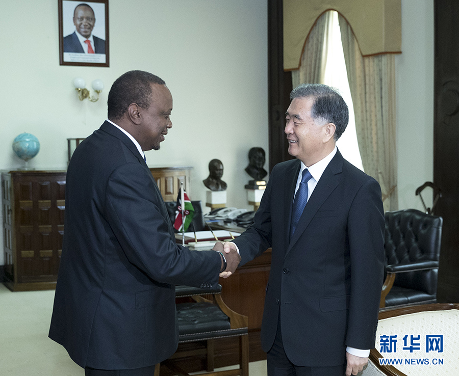 6月16日至19日,應肯尼亞國民議會議長穆圖里邀請,全國政協主席汪洋對肯尼亞進行正式友好訪問。這是6月19日,肯尼亞總統肯雅塔會見汪洋。新華社記者丁海濤攝