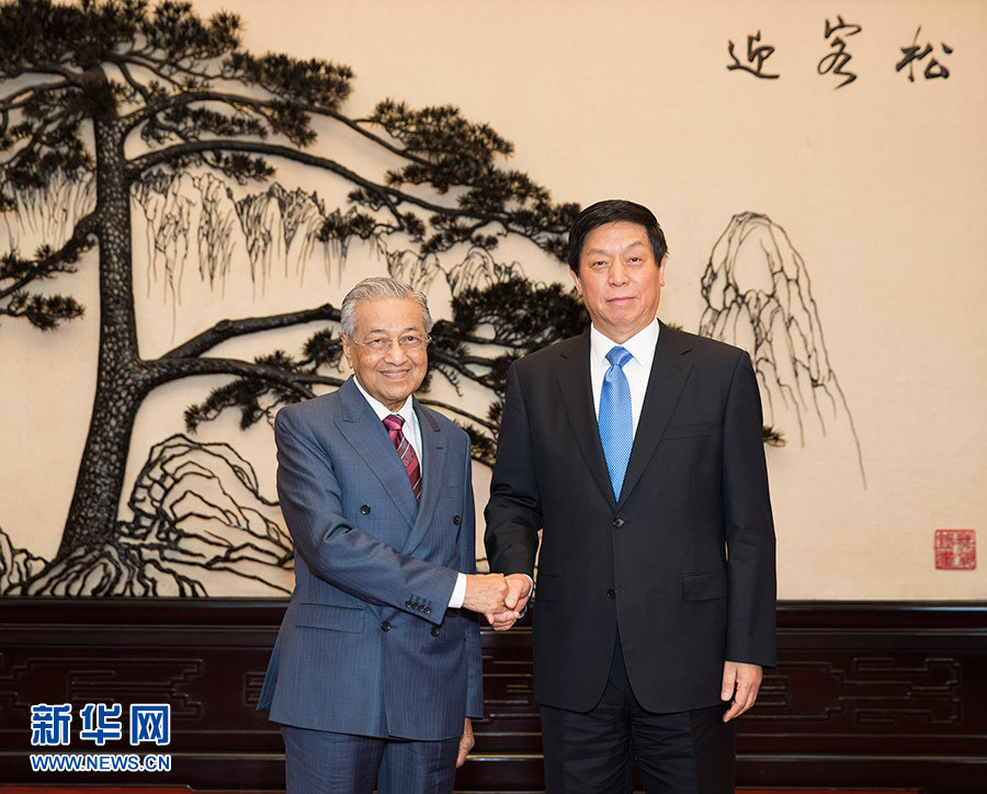 8月20日,全國(guó)人大常委會(huì)委員長(zhǎng)栗戰(zhàn)書在北京人民大會(huì)堂會(huì)見馬來(lái)西亞總理馬哈蒂爾。 新華社記者 黃敬文 攝
