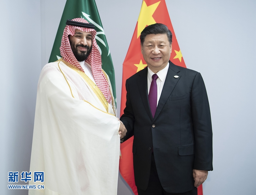 當?shù)貢r間11月30日,國家主席習近平在布宜諾斯艾利斯會見沙特阿拉伯王儲穆罕默德。 新華社記者 李濤 攝