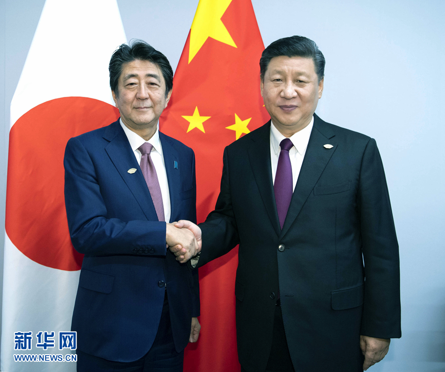 當(dāng)?shù)貢r(shí)間11月30日,國(guó)家主席習(xí)近平在布宜諾斯艾利斯會(huì)見日本首相安倍晉三。 新華社記者 李濤 攝