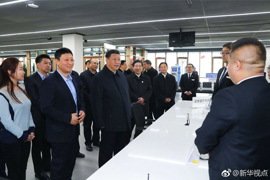 16日上午,雄安新區政務服務中心,部分進駐雄安新區的企業代表看到總書記來了,熱情圍攏上來。習近平得知他們是到雄安新區的第一批創業者,勉勵他們說,我們建設雄安新區,需要各類企業共同參與。無論是國有的還是民營的企業,無論是本地的還是北京的企業,都要把握住這個千載難逢的機會,把握住歷史機遇,做民族復興、改革創新的弄潮兒,創造新的輝煌業績。(記者張曉松、鞠鵬、謝環馳)?