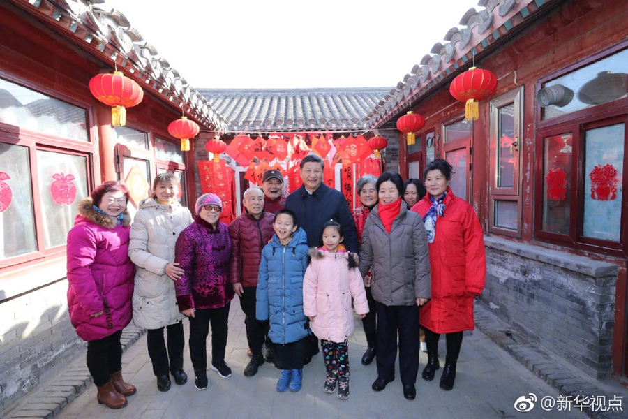 2月1日上午,習(xí)近平來(lái)到前門(mén)東區(qū),沿草廠四條胡同步行察看街巷風(fēng)貌,聽(tīng)取區(qū)域規(guī)劃建設(shè)、舊城保護(hù)整治、人居環(huán)境改善等情況介紹,先后走進(jìn)兩個(gè)四合院看望,同這里的居民一起包餃子、炸饹馇、貼“福”字、聊家常,仔細(xì)詢問(wèn)住房環(huán)境有沒(méi)有改善、年貨備齊沒(méi)有、生活還有什么困難,祝他們生活幸福、新春快樂(lè)。四合院里笑語(yǔ)歡聲,習(xí)近平對(duì)他們說(shuō),中國(guó)共產(chǎn)黨的追求就是讓老百姓生活越來(lái)越好。(記者張曉松、鞠鵬)