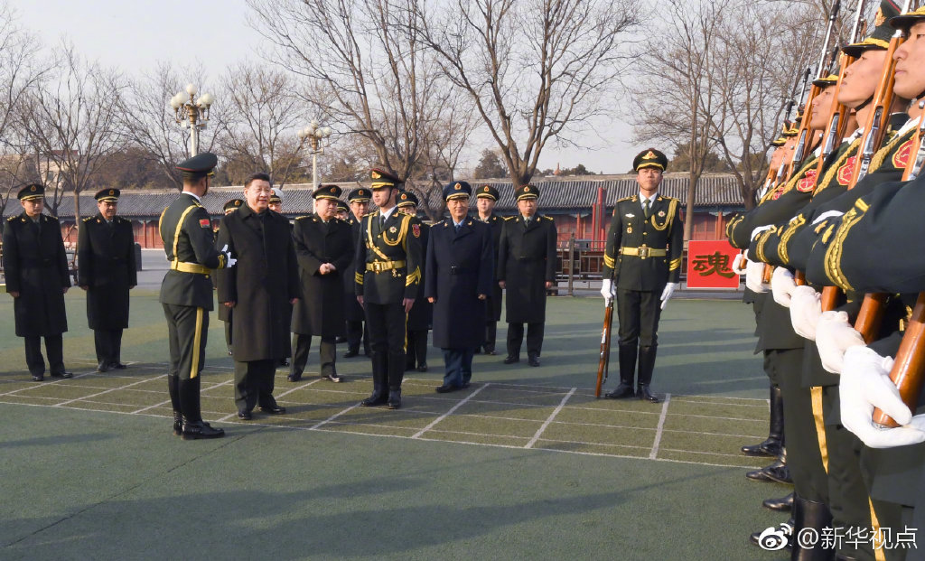 ??????? 2月2日上午,中共中央總書記、國家主席、中央軍委主席習近平來到北京衛戍區國旗中隊看望慰問官兵,觀看護旗隊列動作、展旗收旗訓練和升旗動作演示,并同官兵合影留念。他向大家致以誠摯問候和新春祝福,勉勵官兵牢記職責使命,堅持一流標準,用實際行動捍衛國旗尊嚴。(記者 李宣良)