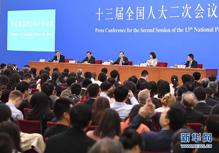 3月15日,國務(wù)院總理李克強在北京人民大會堂會見采訪十三屆全國人大二次會議的中外記者并答記者問。 新華社記者 燕雁 攝