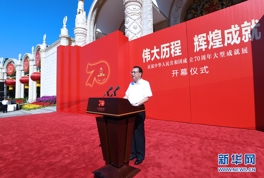 9月23日,“偉大歷程 輝煌成就——慶祝中華人民共和國成立70周年大型成就展”開幕式在北京展覽館舉行。中共中央政治局常委、國務院總理李克強出席開幕式并講話。 新華社記者 饒愛民 攝
