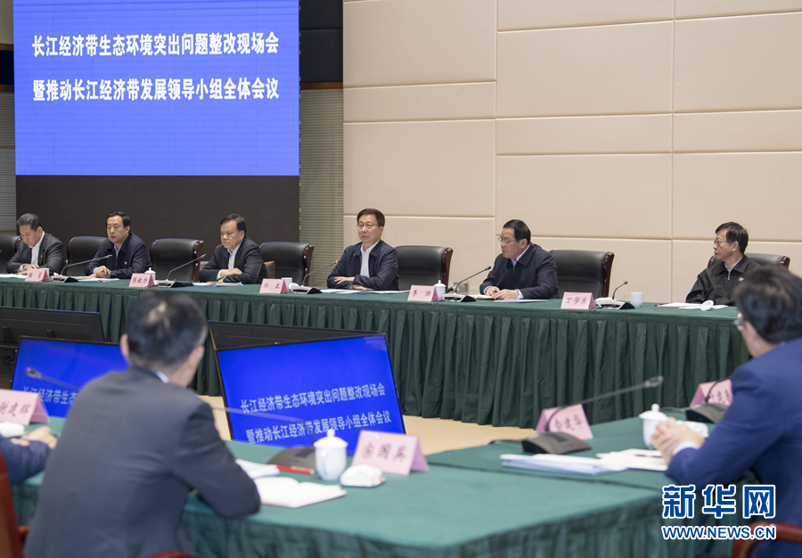 為貫徹落實習近平總書記關于共抓大保護、不搞大開發的重要指示精神,持續深入推進長江生態環境保護工作,韓正會前要求生態環境部與中央廣播電視總臺再次組成聯合調查組,歷時近8個月、深入長江經濟帶11省市、行程約14萬公里,進行暗查暗訪和明查核實,進一步查問題、找病根、尋病源,編輯形成2019年長江經濟帶生態環境警示片。會上播放了警示片,長江經濟帶11省市和有關部門負責同志就警示片反映的問題作了發言。