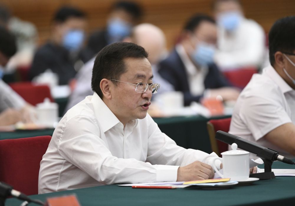楊維中在座談會上發言。新華社記者 殷博古 攝