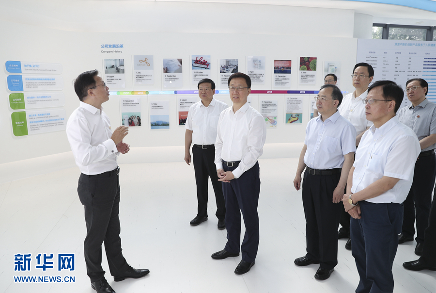 8月21日至23日,中共中央政治局常委、國務(wù)院副總理韓正在江蘇南京、蘇州、無錫調(diào)研。這是8月22日,韓正在位于蘇州的信達生物制藥(蘇州)有限公司,考察企業(yè)研發(fā)和生產(chǎn)經(jīng)營情況。 新華社記者 丁海濤 攝