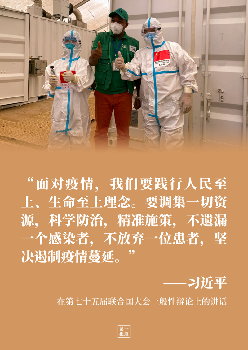 在第七十五屆聯(lián)合國大會一般性辯論上發(fā)表重要講話時,習主席提出抗擊新冠肺炎疫情的4點倡議,第一條就是“踐行人民至上、生命至上理念”。