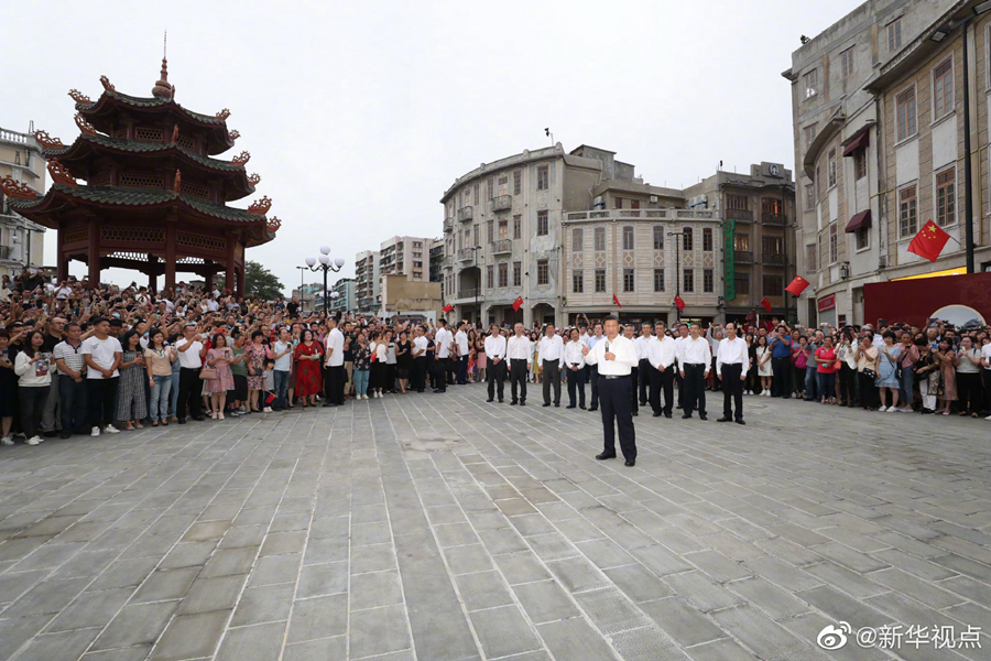 在廣東省汕頭市考察的習近平總書記步行察看開埠區街區人文歷史風貌,同熱情圍攏過來的市民群眾親切交流。習近平強調,我此行到廣東考察,就是進一步向國內外宣示,中國共產黨領導中國人民將繼續堅定不移走改革開放的道路,奮發有為推進社會主義現代化強國建設,鍥而不舍努力實現中華民族偉大復興的中國夢。父老鄉親們,讓我們攜手努力,共同奮斗?。ㄎ淖钟浾撸簭垥运伞⒅旎O 攝影記者:鞠鵬、王曄)