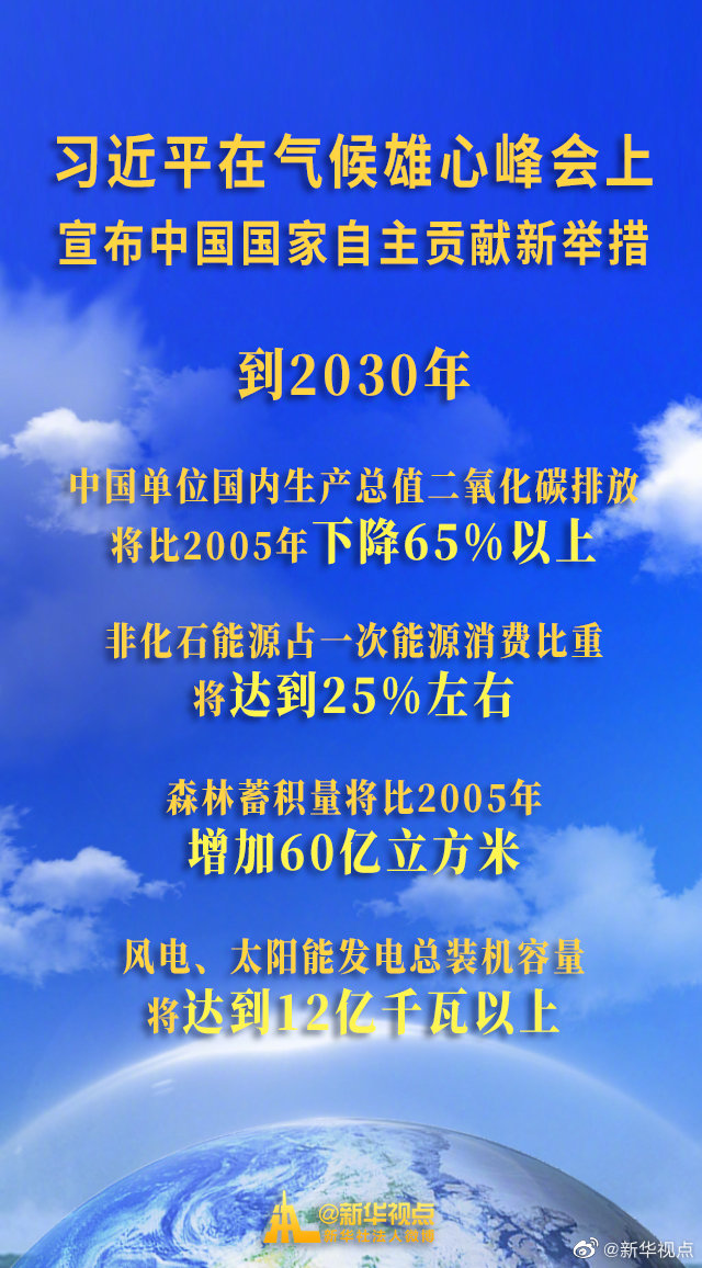 習(xí)近平宣布中國國家自主貢獻(xiàn)新舉措