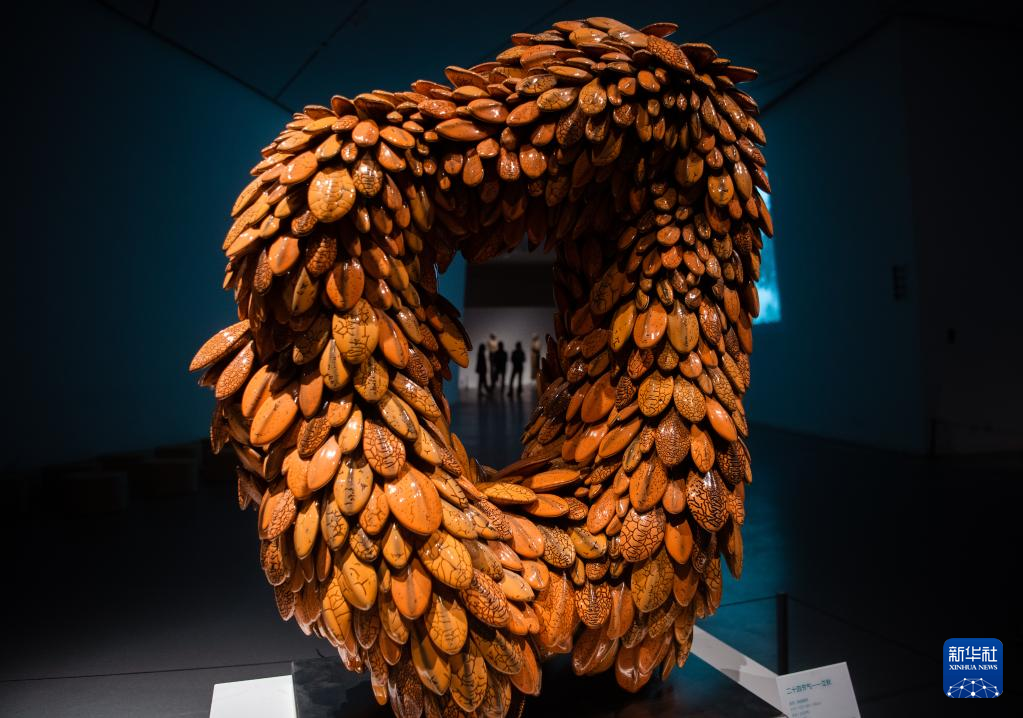 3月16日,参观者观看展出作品。