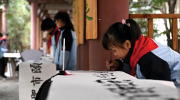 3月29日,视障学生在展览现场通过盲文以及可供触摸的文物模型和五感体验盒等观展。