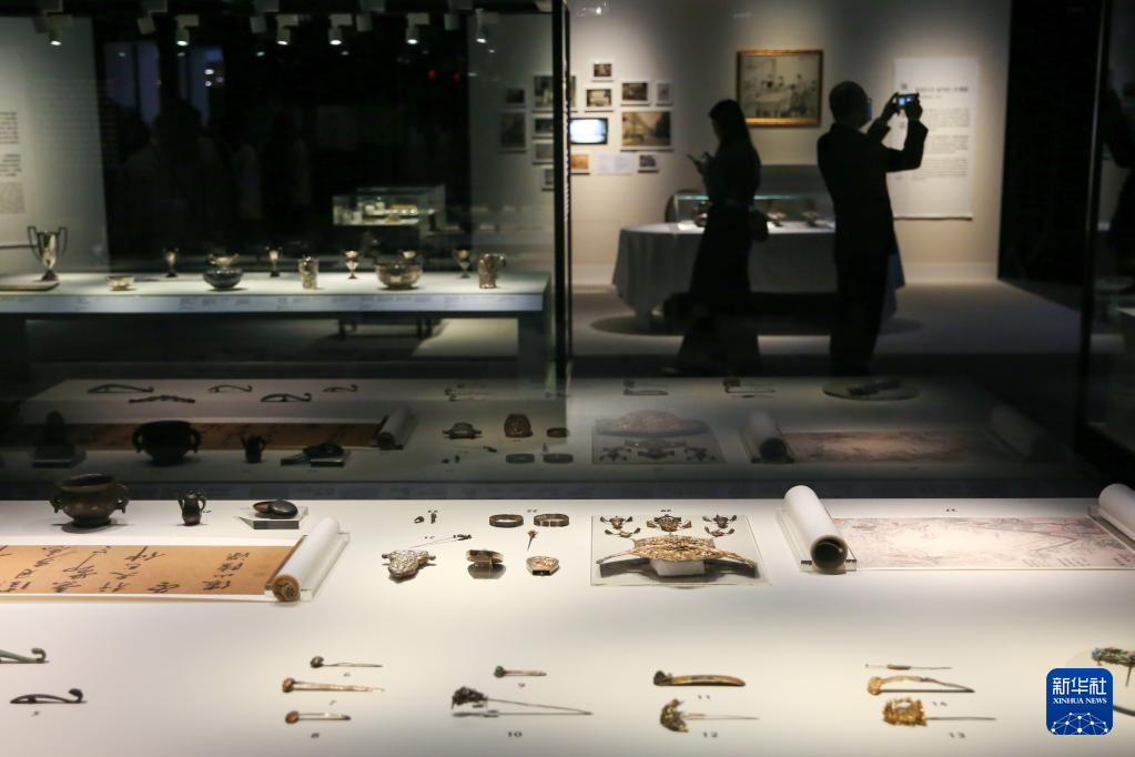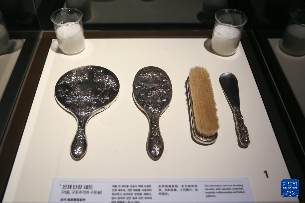 这是6月1日在韩国首尔历史博物馆拍摄的“海上银珠·璀璨华光——上海市历史博物馆馆藏银器展”展品。