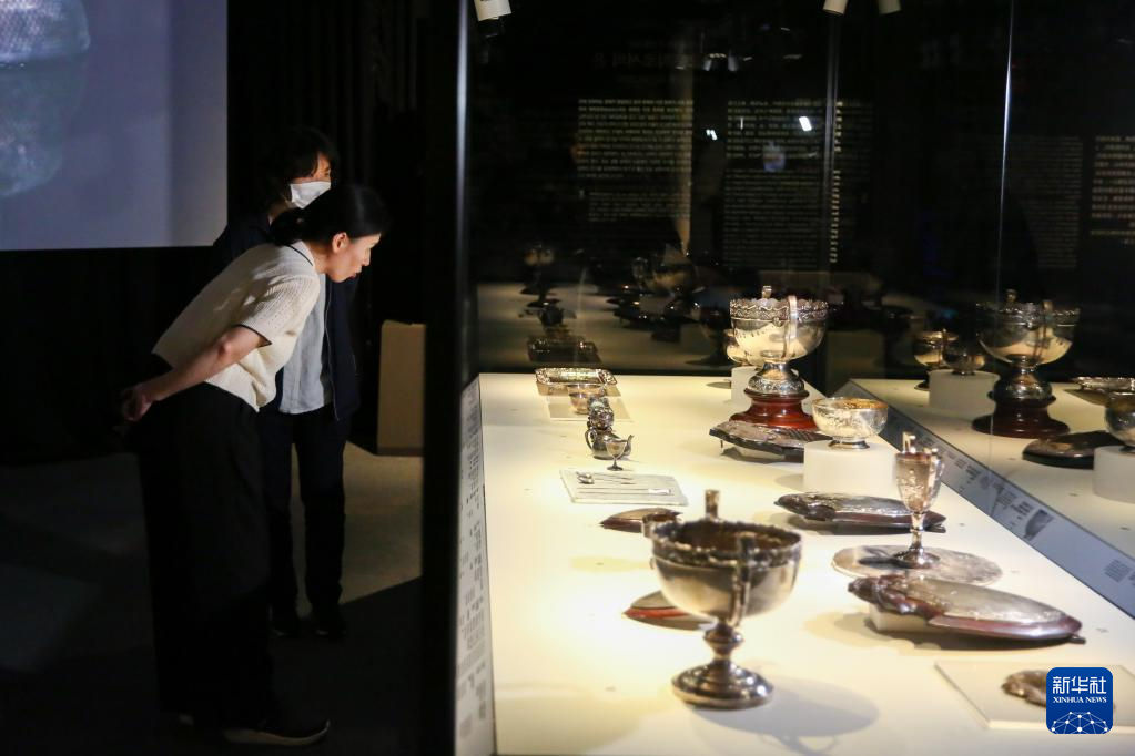 6月1日,人们在韩国首尔历史博物馆参观“海上银珠·璀璨华光——上海市历史博物馆馆藏银器展”。