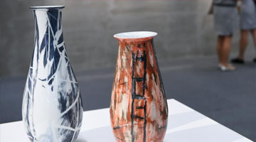 10月24日,艺人在甘肃省定西市临洮县洮砚艺术馆介绍一款洮砚的创作构想。