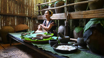 西汉彩绘人物车马镜局部彩绘图案“宴饮”(8月25日摄)。