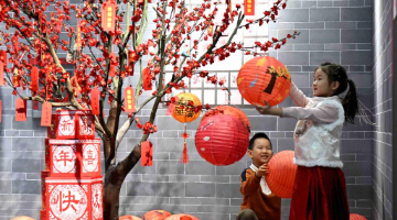 1月21日,观众在“聚宝之盆——新疆文物珍品展”观赏黑人百戏俑。