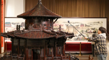 3月29日,观众在参观“如是莫高”敦煌艺术大展中展出的莫高窟第158窟的复刻版本。