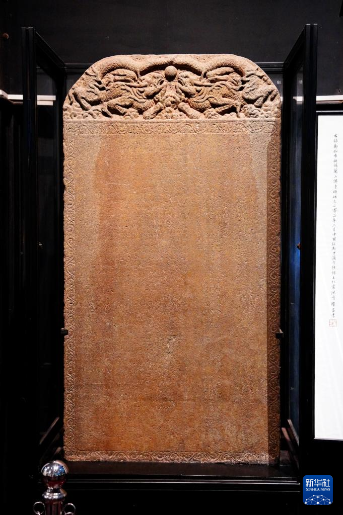 4月17日,郑和遗存《布施锡兰山佛寺碑》(中)在斯里兰卡科伦坡国家博物馆主展厅展出。