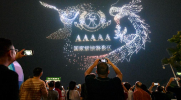 7月10日,观众在南京博物院观看展览的球形视频介绍。