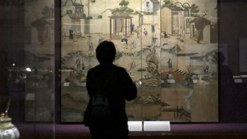 12月10日,观众在中国美术馆观赏展出作品《和而不同》。