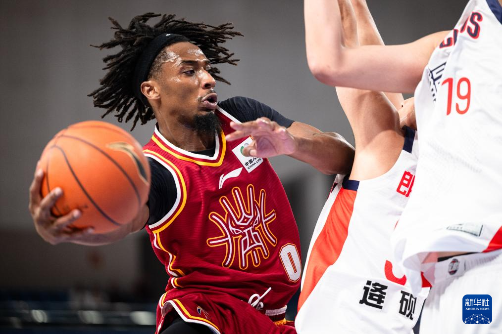 12月3日,山西汾酒队球员黑根斯(左)在比赛中传球。