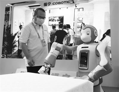 一款会“擦桌子”的智能家居服务机器人。该机器人具备移动辅助、卫生保洁等多种功能,可应用于医院、养老院、社区等不同环境。资料照片