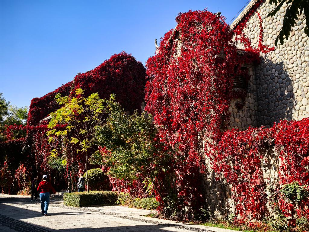 近日,甘肃省张掖市临泽县丹霞口文旅小镇秋意正浓。