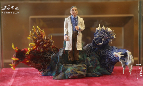 面塑俗稱面人,因為它主要的題材都是人物,所以老百姓們也管它叫面人。這個是“三八婦女節(jié)”那天做的,我看到當時有很多的醫(yī)護人員作為人類的代表跟另外一個物種去斗爭、保護我們,覺得她們還真的是很了不起的。想到以前巾幗英雄里邊穆桂英這個角色,加上京劇也是我們傳統(tǒng)文化中很寶貴的一個部分,就把這兩個結合在一起做了一個拼臉。