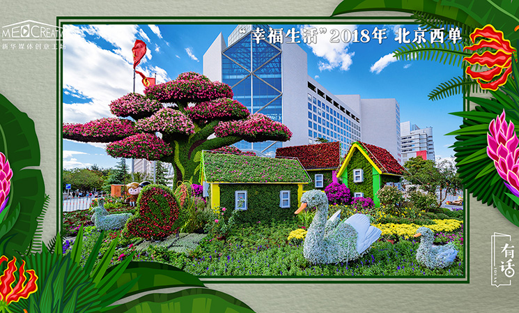 花壇的創新包括花材的創新,新花材的應用成為設計師的重要任務。我這幾年經常來往于云南、廣西邊遠山區之間,親眼目睹了百姓脫貧致富的經歷。當地百姓從單一的農作物耕種到種植果蔬再到種植花卉,其中彩花矮化的三角梅就是最受歡迎的花卉品種。2018年我們在西單西北角“幸福生活”花壇里用三角梅設計了一棵繽紛的花樹,造型自然、色彩斑駁、栩栩如生,深受大家的喜愛,被百姓評為“最美花樹”,這極大地激勵著我們用新興花材搞設計。今年的花壇依然采用了來自偏遠山區的三角梅,這對于決勝全面小康具有非凡的意義。